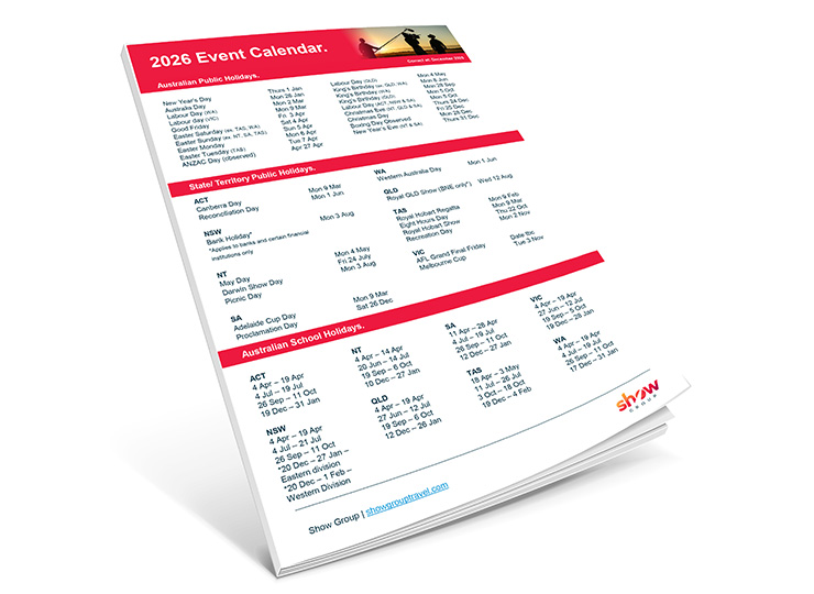 Take your travel program to new heights with Show Group’s 2026 Event Calendar.